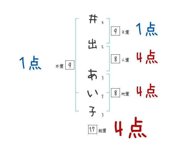 総運![]() | 井出あい子さんの総運は17画の4つ星!積極的な行動力。地位を気づき財産を手に入れる。純粋な心と直感力。 あなたの人生を表す1番重要な運勢です。生涯を通じて影響する総合運となり、主に50歳以降の晩年期に影響を及ぼします。 |