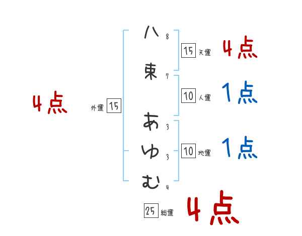 外運![]() | 八束あゆむさんの外運は15画の4つ星!人徳があり出世する。順調に物事を進め円満な人生。 生活面を象徴する運勢です。外部から受ける影響力を表し、結婚運、家庭運や職場、環境への順応性を表します。 |