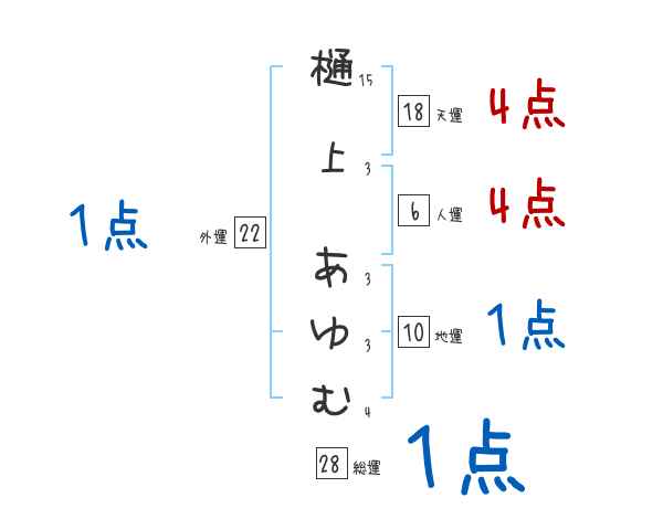 樋上あゆむさんの画数の鑑定結果