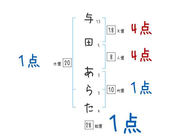 与田あらたさんの画数の鑑定結果