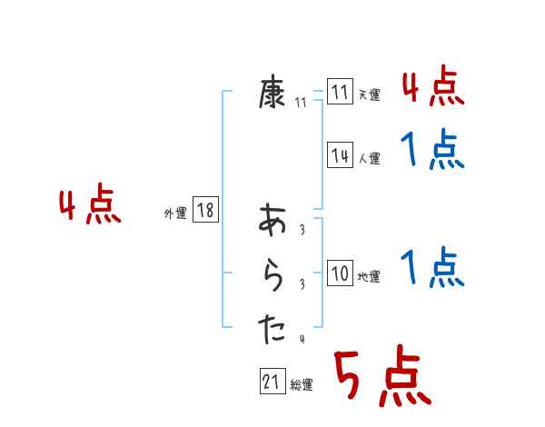 康あらたさんの画数の鑑定結果