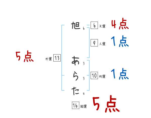旭あらたさんの画数の鑑定結果