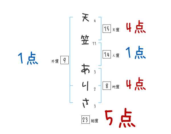 総運![]() | 天笠ありささんの総運は23画の5つ星!想像力に優れ活力がある。一代で成功し名誉を手に入れる。 あなたの人生を表す1番重要な運勢です。生涯を通じて影響する総合運となり、主に50歳以降の晩年期に影響を及ぼします。 |