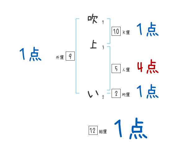 天運![]() | 吹上いさんの天運は10画の1つ星!不安を感じやすい傾向。ストレスを抱えないように注意しましょう。 家系が持つ宿命的な運勢を表します。祖先から受け継いだ苗字ですので自分の力が及びません。家柄を象徴します。 |