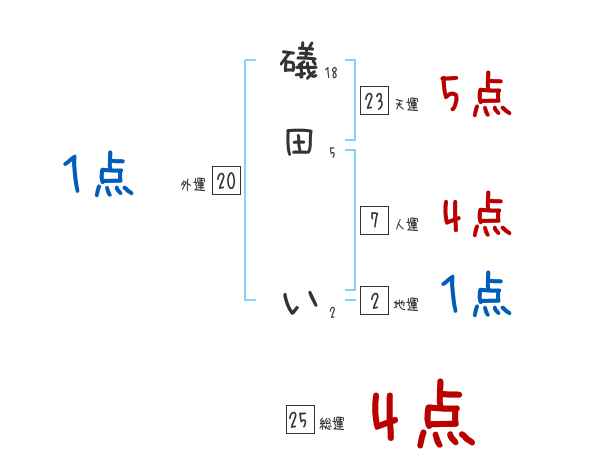 礒田いさんの画数の鑑定結果