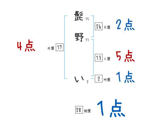 髭野いさんの画数の鑑定結果