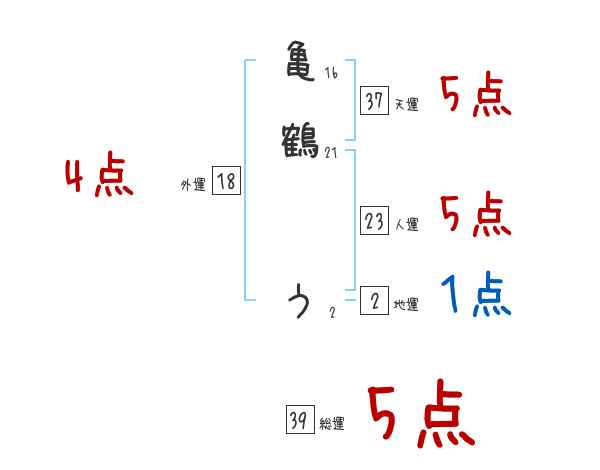 亀鶴うさんの画数の鑑定結果