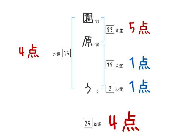 園原うさんの画数の鑑定結果