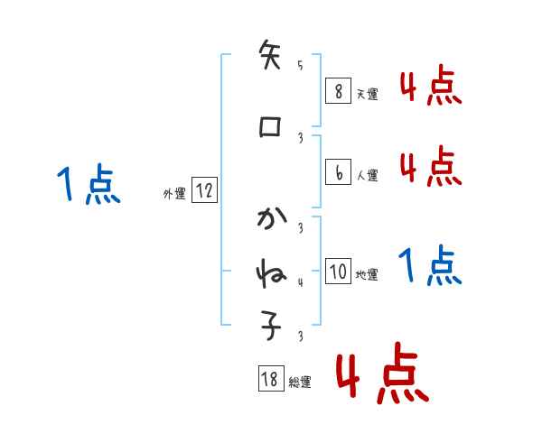 矢口かね子さんの画数の鑑定結果