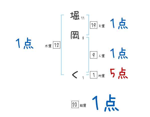 堀岡くさんの総運は20画の1つ星