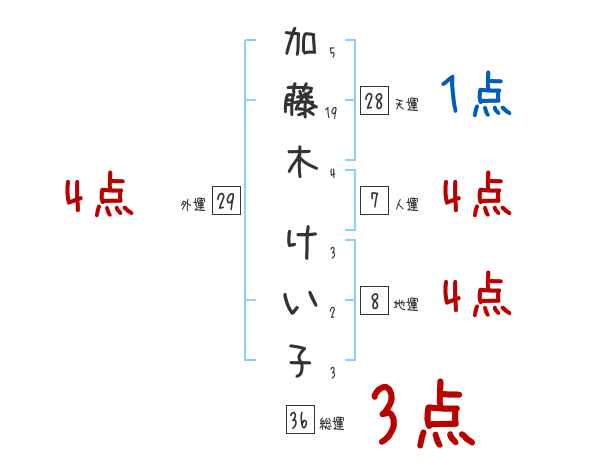 加藤木けい子さんの画数の鑑定結果