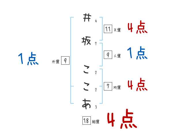 井坂ここあさんの画数の鑑定結果