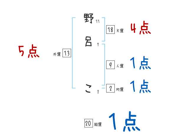 野呂こさんの画数の鑑定結果