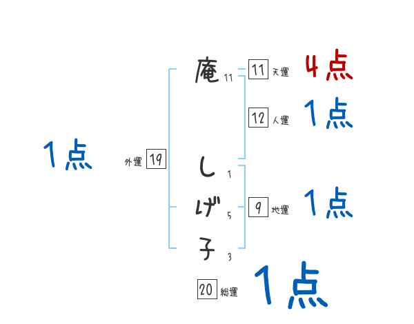 庵しげ子さんの画数の鑑定結果