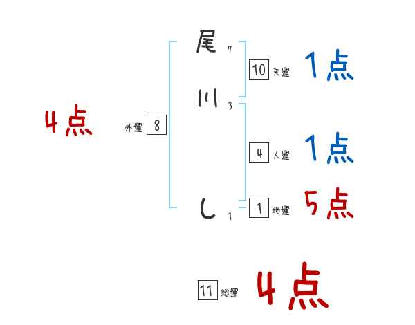 尾川しさんの画数の鑑定結果