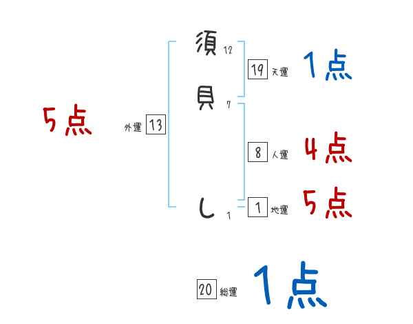 天運![]() | 須貝しさんの天運は19画の1つ星!優れた才能を持ちますが、協調性が足りないことも。周りの人と協力する事を意識しましょう。 家系が持つ宿命的な運勢を表します。祖先から受け継いだ苗字ですので自分の力が及びません。家柄を象徴します。 |