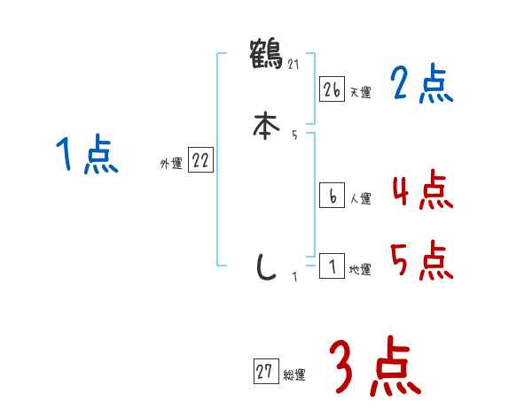 鶴本しさんの画数の鑑定結果