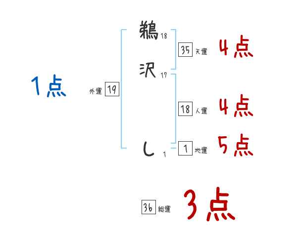 鵜沢しさんの画数の鑑定結果