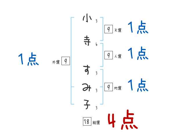 総運![]() | 小寺すみ子さんの総運は18画の4つ星!情熱的で剛気。忍耐力があり信頼される。 あなたの人生を表す1番重要な運勢です。生涯を通じて影響する総合運となり、主に50歳以降の晩年期に影響を及ぼします。 |
