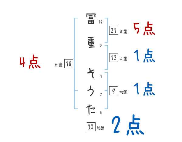 冨重そうたさんの画数の鑑定結果