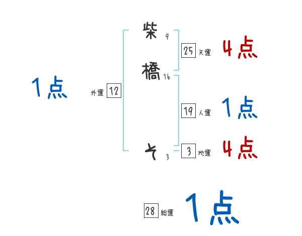 総運![]() | 柴橋そさんの総運は28画の1つ星!家庭環境に注意。スポーツで活躍できる能力があるかも。 あなたの人生を表す1番重要な運勢です。生涯を通じて影響する総合運となり、主に50歳以降の晩年期に影響を及ぼします。 |