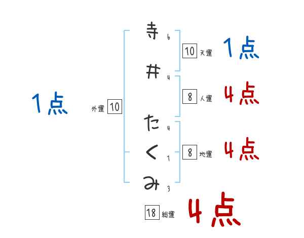 寺井たくみさんの画数の鑑定結果