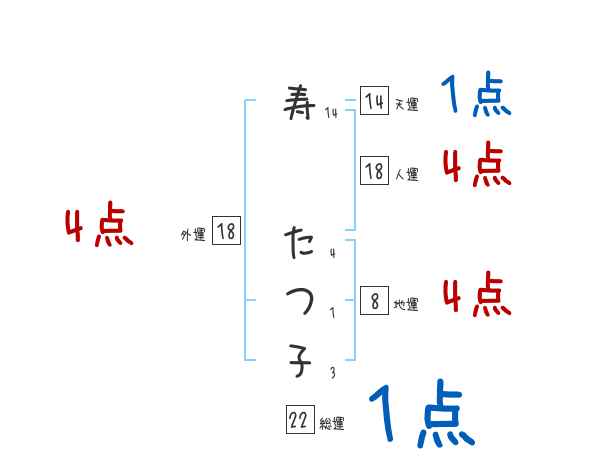 寿たつ子さんの画数の鑑定結果