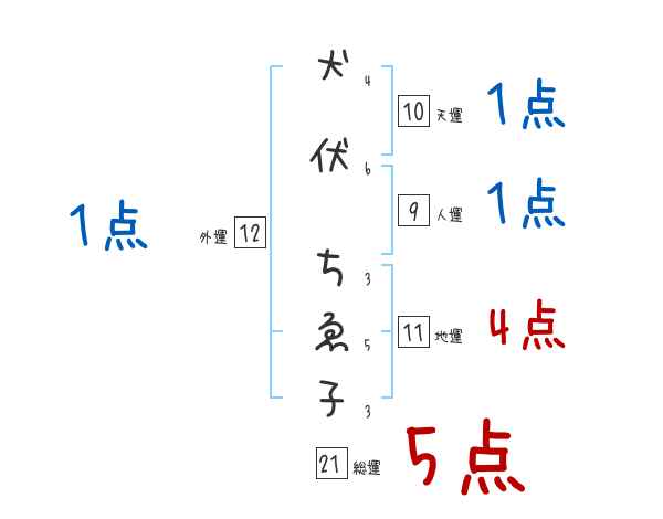 総運![]() | 犬伏ちゑ子さんの総運は21画の5つ星!統率力がある。独立し成功する。名誉を手に入れる。 あなたの人生を表す1番重要な運勢です。生涯を通じて影響する総合運となり、主に50歳以降の晩年期に影響を及ぼします。 |