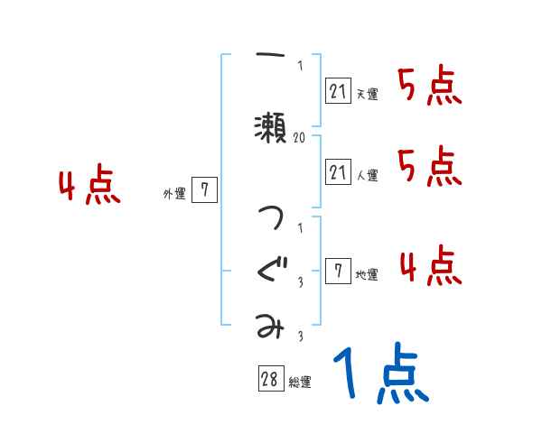 一瀬つぐみさんの画数の鑑定結果