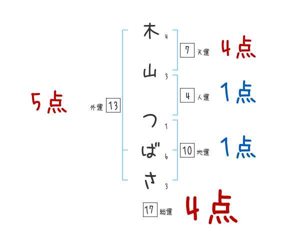 木山つばささんの画数の鑑定結果