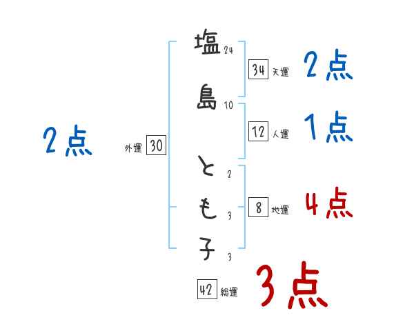 塩島とも子さんの画数の鑑定結果