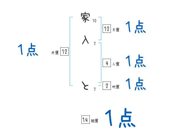天運![]() | 家入とさんの天運は12画の1つ星!簡単な失敗で諦めてしまいやすいかも。着実に行動すると良いでしょう。 家系が持つ宿命的な運勢を表します。祖先から受け継いだ苗字ですので自分の力が及びません。家柄を象徴します。 |