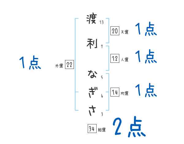 渡利なぎささんの画数の鑑定結果