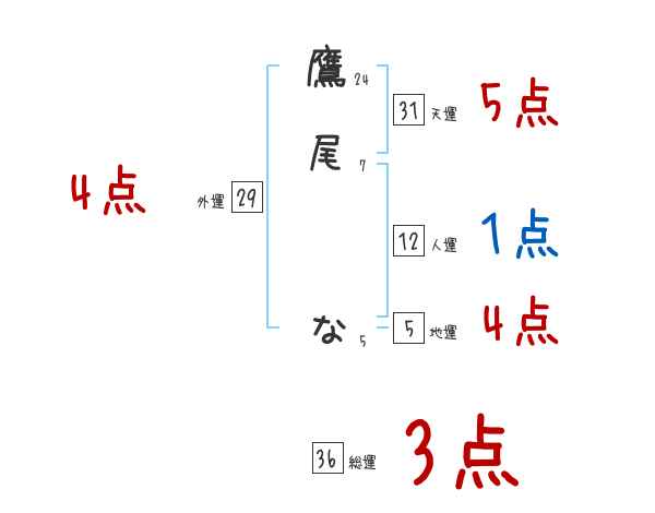 鷹尾なさんの画数の鑑定結果