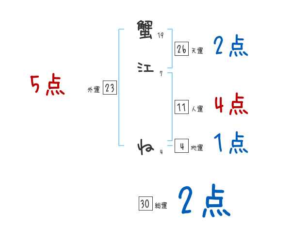 蟹江ねさんの画数の鑑定結果