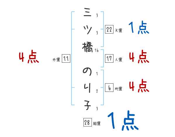 三ツ橋のり子さんの画数の鑑定結果