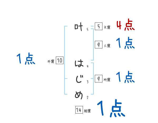天運![]() | 叶はじめさんの天運は5画の4つ星!健康で安泰。協調性に優れ、財産に恵まれる。 家系が持つ宿命的な運勢を表します。祖先から受け継いだ苗字ですので自分の力が及びません。家柄を象徴します。 |