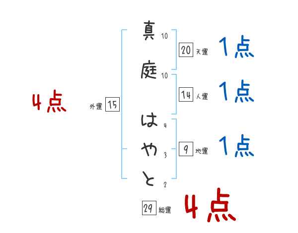 外運![]() | 真庭はやとさんの外運は15画の4つ星!人徳があり出世する。順調に物事を進め円満な人生。 生活面を象徴する運勢です。外部から受ける影響力を表し、結婚運、家庭運や職場、環境への順応性を表します。 |