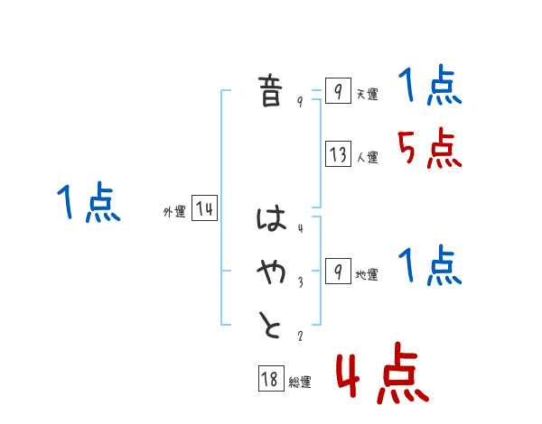 人運![]() | 音はやとさんの人運は13画の5つ星!才能に恵まれ人気がある。名声を手に入れる。円満な人生。 性格や才能などを表す2番目に重要な運勢です。人間関係や協調性、社会的な成功に影響します。主に20歳から50歳ぐらいまでの中年期の運勢を表します。 |