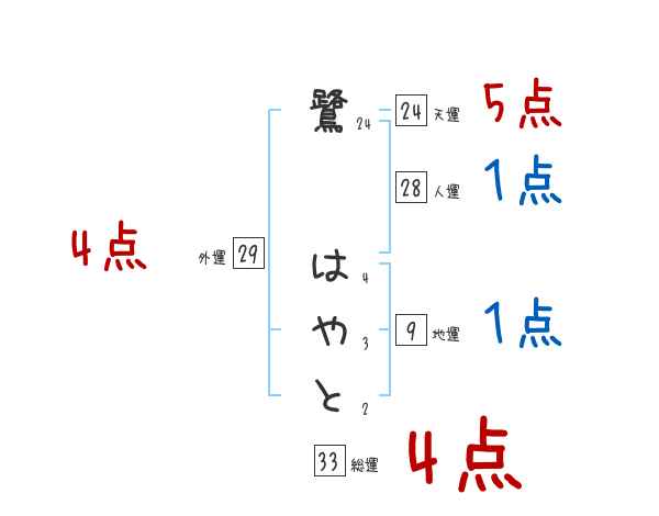 鷺はやとさんの画数の鑑定結果