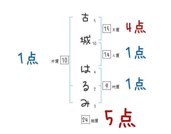 古城はるみさんの画数の鑑定結果