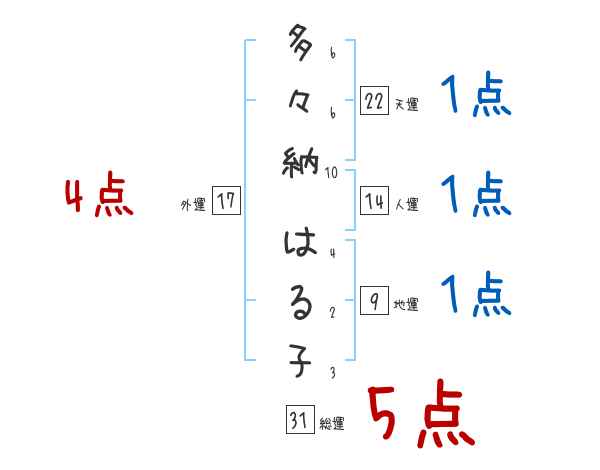 外運![]() | 多々納はる子さんの外運は17画の4つ星!積極的な行動力。地位を気づき財産を手に入れる。純粋な心と直感力。 生活面を象徴する運勢です。外部から受ける影響力を表し、結婚運、家庭運や職場、環境への順応性を表します。 |