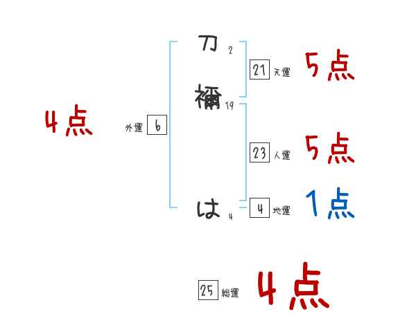 刀禰はさんの画数の鑑定結果