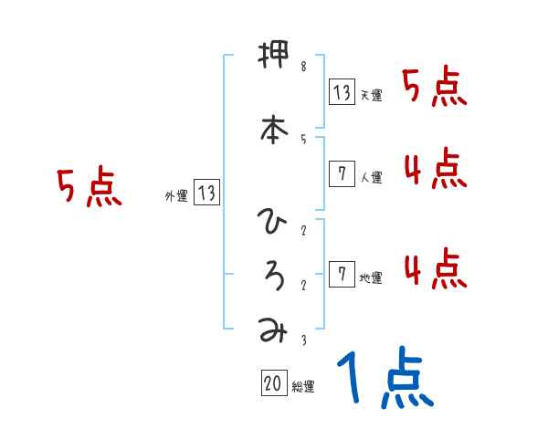 天運![]() | 押本ひろみさんの天運は13画の5つ星!才能に恵まれ人気がある。名声を手に入れる。円満な人生。 家系が持つ宿命的な運勢を表します。祖先から受け継いだ苗字ですので自分の力が及びません。家柄を象徴します。 |