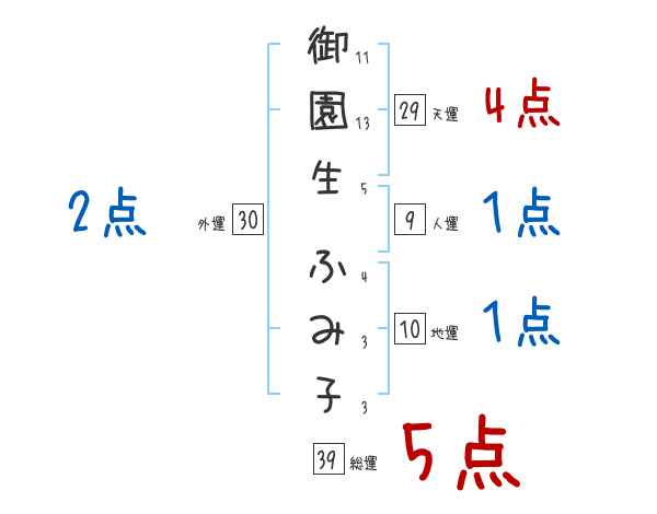 天運![]() | 御園生ふみ子さんの天運は29画の4つ星!完全主義で才能がある。厳格な心の持ち主。 家系が持つ宿命的な運勢を表します。祖先から受け継いだ苗字ですので自分の力が及びません。家柄を象徴します。 |