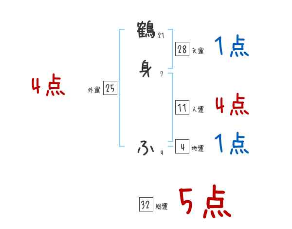 鶴身ふさんの画数の鑑定結果