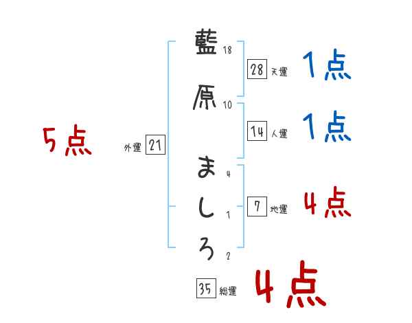 藍原ましろさんの画数の鑑定結果