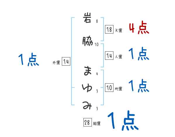 天運![]() | 岩脇まゆみさんの天運は18画の4つ星!情熱的で剛気。忍耐力があり信頼される。 家系が持つ宿命的な運勢を表します。祖先から受け継いだ苗字ですので自分の力が及びません。家柄を象徴します。 |