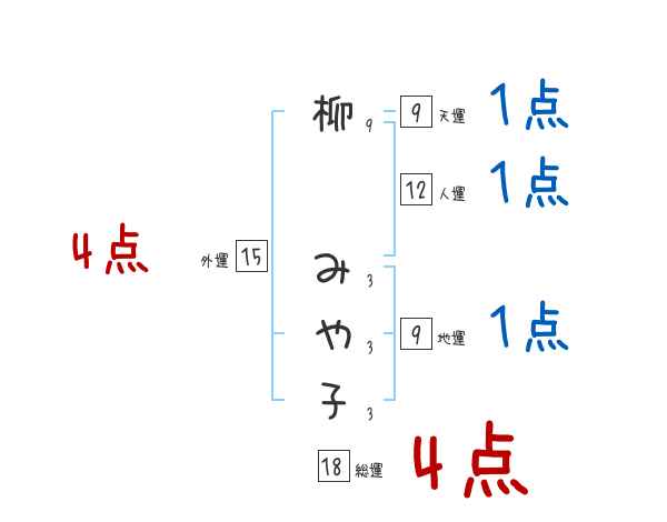 天運![]() | 柳みや子さんの天運は9画の1つ星!消極的で才能を発揮することが苦手なことも。周りの意見に耳を傾けましょう。 家系が持つ宿命的な運勢を表します。祖先から受け継いだ苗字ですので自分の力が及びません。家柄を象徴します。 |