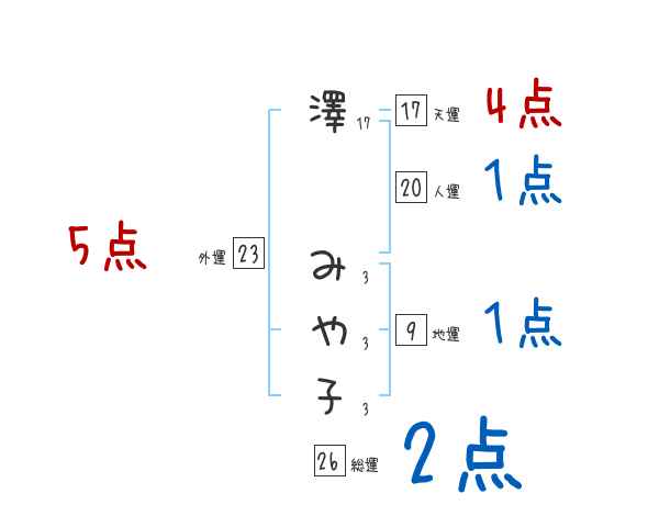 澤みや子さんの画数の鑑定結果